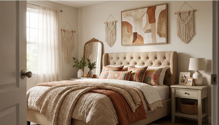 Personalize the room using Wall art, photo frames, and mirrors while bringing warmth through Texture accents like rugs and chair fabrics. If you’re searching for bedroom decor ideas 2026, expect more comfort-first design, natural materials, and layered lighting trends.