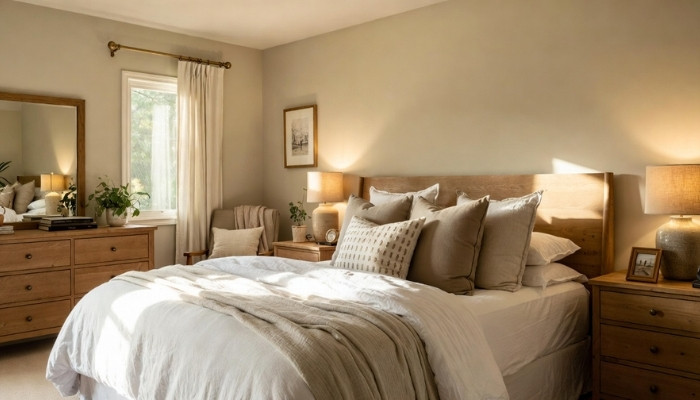 Using mirrors to reflect light, keeping furniture proportional to the room size, and choosing light-colored walls can instantly make a small bedroom feel more open. Proper lighting and vertical storage also improve the sense of space.